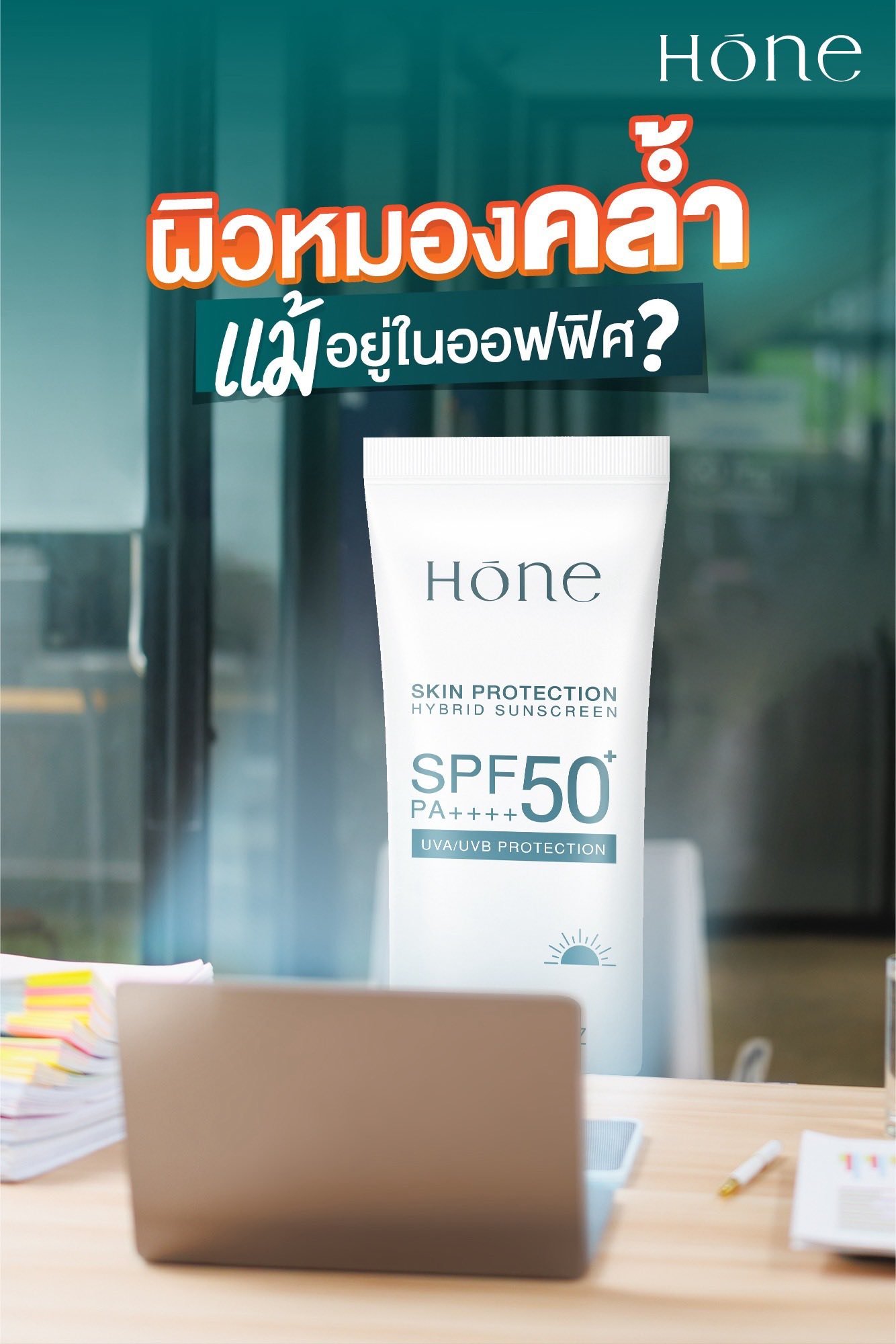 เพราะฉะนั้น อย่าลืมปกป้องผิวทุกวันด้วย HONE Hybrid Sunscreen กันแดดที่ออกแบบมาเพื่อ ชีวิตคนทำงานยุคดิจิทัล ปกป้องครบทุกแสง ให้ผิวคุณดูดีแม้อยู่ในออฟฟิศ